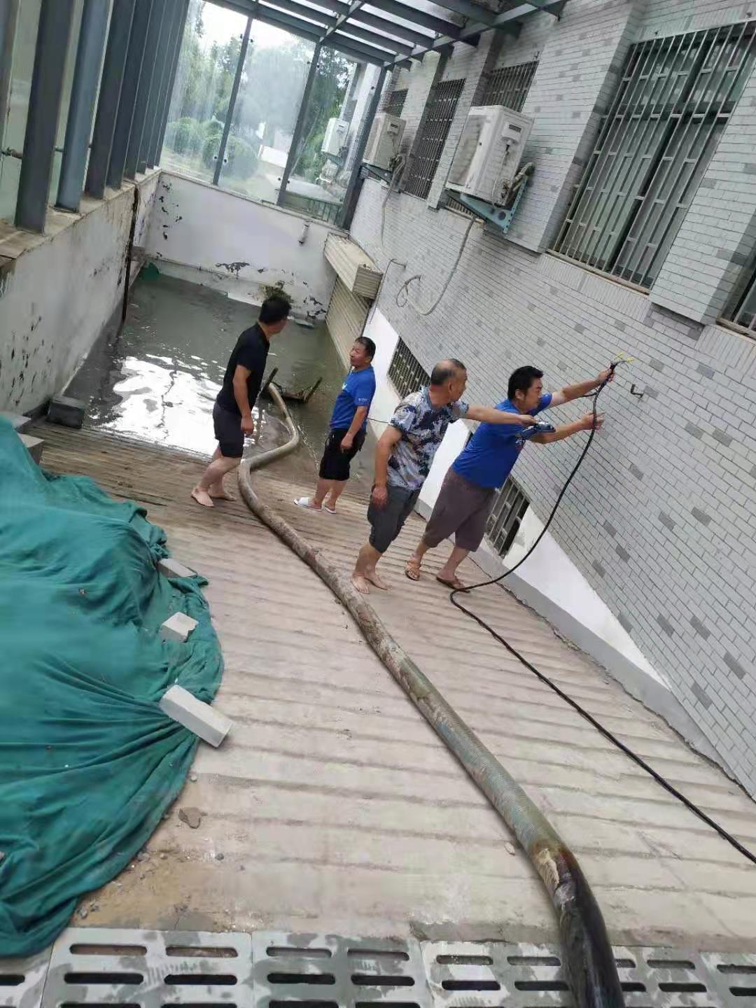 险情就是命令!后勤管理服务中心立刻行动起来,主任徐纪珂亲自带领排涝队伍投入到排水一线,通过电话、微信工作群通报汛情并布置工作。本次降雨量大,持续时间长,导致365官网行政楼周边、南大门周边、3号教学楼地下室、体育场西侧、学生宿舍等区域严重积水,尤其是南大门两侧积水已严重影响师生通行,在南大门东侧低洼处架设水泵进行排水作业,保障师生出行。