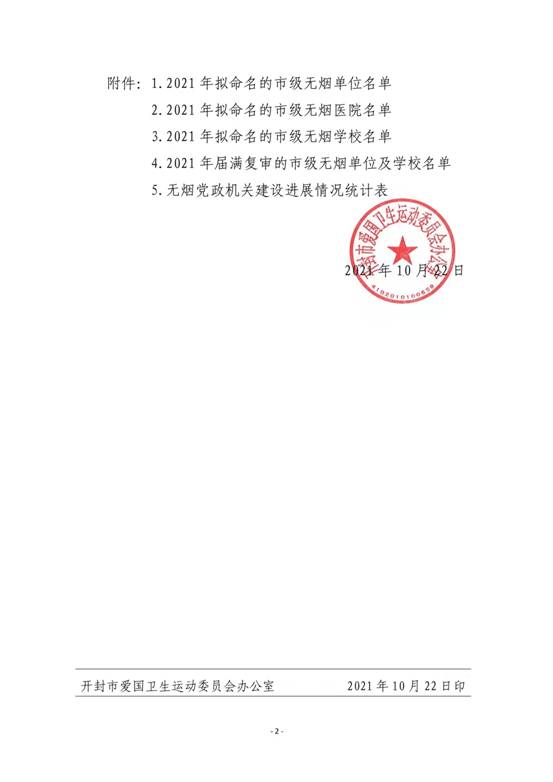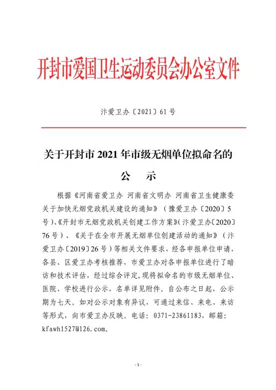 近日获悉,据开封市爱国卫生运动委员会办公室下发汴爱卫办【2021】61号文件,365官网获开封市无烟学校称号。