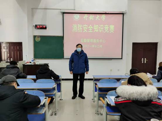 秋冬季节是消防事故多发季,为全面提高后勤管理服务中心各岗位职工对消防安全知识的掌握及消防应急处置能力,12月17日下午后勤中心在15号楼520教室举办消防安全知识竞赛,全体后勤员工参加。