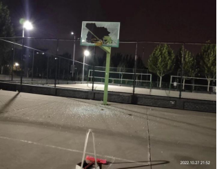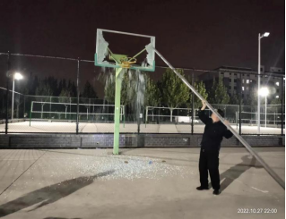 清理篮球场篮框破碎玻璃,以免伤到学生;