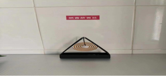 1、为改善行政楼卫生间异味,采用三角檀香架悬挂点燃檀香;