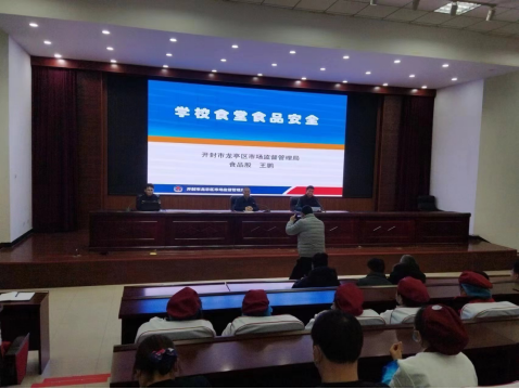 本次讲座由龙亭区市场监督管理局食品股股长王鹏讲授,讲座中王股长从餐厅食品安全监督管理、餐饮食品安全日常监督检查、学校食堂食品安全监督管理及食堂布局参考四个方面进行了全方位的讲解。并针对学校食品安全职责、主要风险和可能存在问题及食品加工过程控制、食品的贮存要求、餐饮具消毒等方面进行了重点强调。