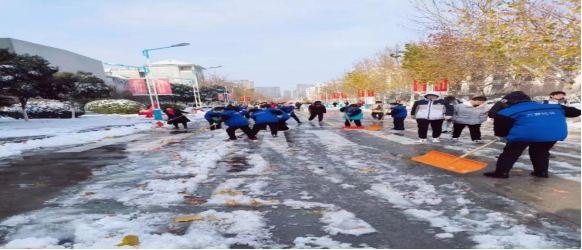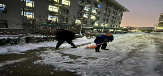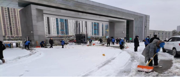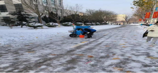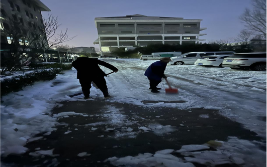 受寒潮影响,我市普降大雪,12月11日早六点,后勤卫健办启动铲冰除雪应急预案,立即组织工作人员积极开展“铲雪除冰保安全”行动,确保校园道路畅通。