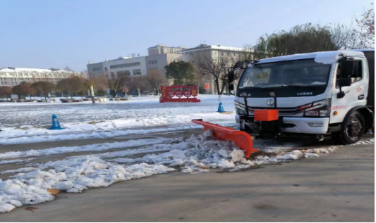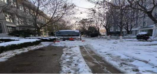 为了及时清理积雪,后勤卫健办工作人员指挥除雪车辆迅速清理道路积雪,统筹安排车辆在校园主次干道等重点路段开展机械化作业,通过人机联合协同作业,校园积雪得到及时清理,保障师生安全出行。