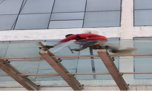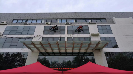 1、为提升楼宇形象,对3号教学楼大门玻璃幕墙、雨棚进行清洗,面貌焕然一新;