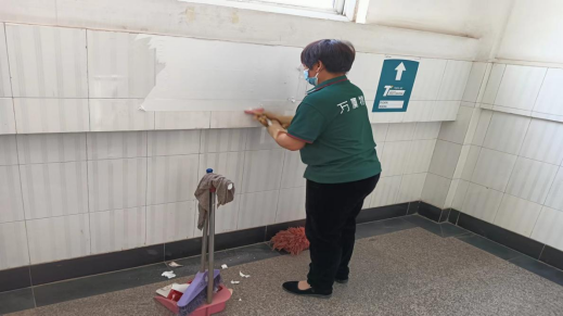 2、为保持教学楼干净、整洁,清理走廊、卫生间、消防步梯处过期标识、小广告;