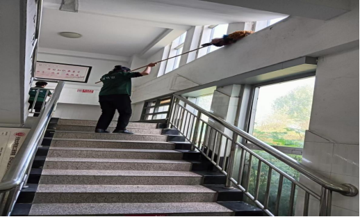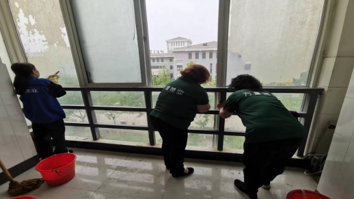 4、为保障教学楼细节卫生环境,对楼道进行拖洗、除尘、清理蜘蛛网;