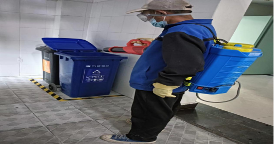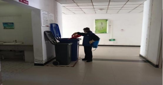 3、对行政楼卫生间、垃圾桶进行消毒、消杀;