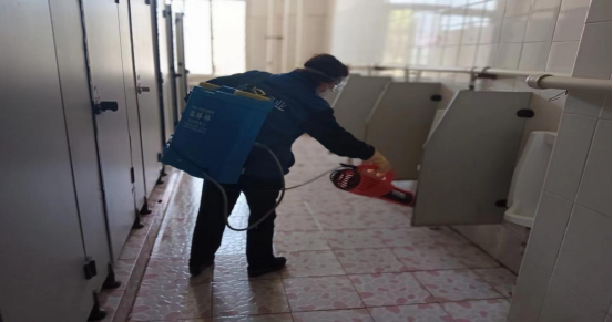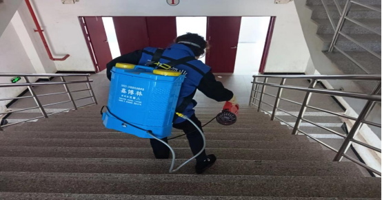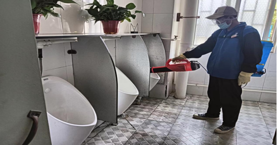 为杜绝细菌、病毒、蚊蝇孳生,有效切断夏季传染病传播途径,切实保障全体师生身体健康,5月13日后勤卫健办组织工作人员对校内进行全方位的卫生消杀、消毒工作。