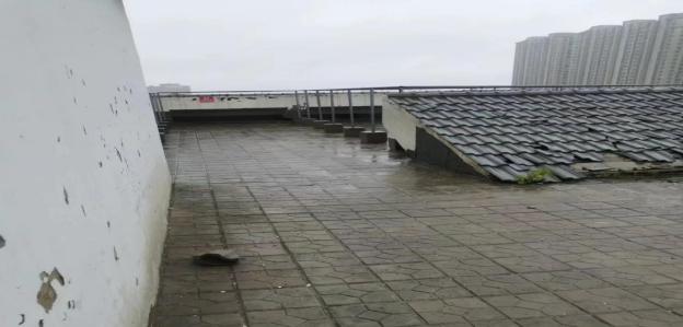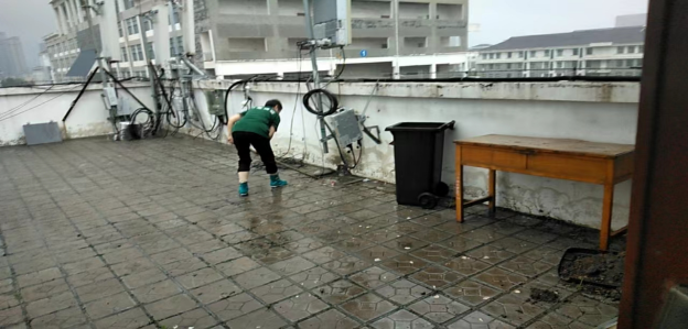 2、暴雨天气工作人员教学楼天面进行排查,保障教学楼安全度汛;