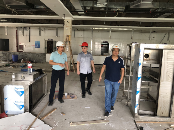 8月2日,后勤管理服务中心主任徐纪珂带领饮食管理部相关人员对学术交流中心和东苑餐厅三楼的施工现场进行安全检查,实地查看工程进度、查看工程质量、督促施工效率。