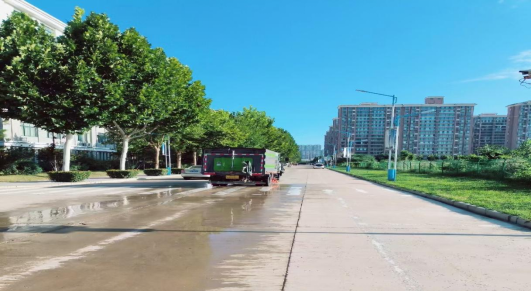 4、为提升校园环境,使用大型机器对校园道路进行洒水;