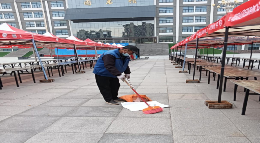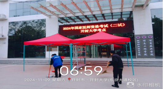 2024年11月9日-10日,国家医师资格考试、2025届毕业生秋季双选会分别在3号教学楼以及大观广场上进行,为保障现场的卫生质量,后勤卫健办高度重视、提前进行工作策划、布置,及时处理突发问题,为师生提供一个干净、整洁的卫生环境。