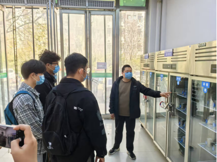 学生代表在饮食管理部老师的带领下来到餐厅内部,依次参观了食品留样、洗碗间、食堂的主副食品仓库并深入操作间参观食品存放、烹饪加工、食材储备等环节的工作流程。抽查了食堂的生、熟冰箱,食堂各项记录及索票索证记录等信息。学生边听边了解,并对学生餐厅精细化管理工作予以肯定。