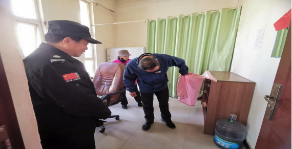 工作人员对教学楼进行排查