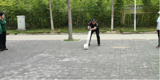 2、锤炼实操本领,讲解及从业人员进行灭火器和消防水带实操演练;