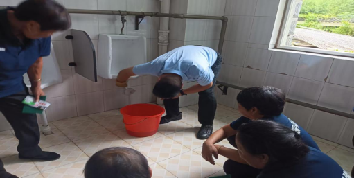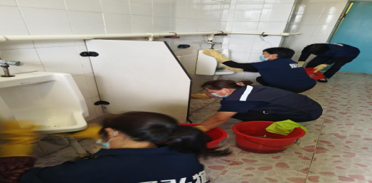 重点整治内容及新标准要求:一是针对教学楼各楼层卫生间门板,全面清理乱写乱画痕迹及各类小广告,工作人员使用专业清洁剂和工具,恢复门板整洁;二是针对小便器下方积存的长年顽固污渍与黄渍,制定周期性深度刷洗和消毒,确保无残留、无异味操作流程。