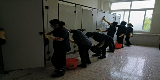 为优化教学楼环境卫生,提升校园后勤服务质量,近期后勤卫健办聚焦卫生间清洁要点、痛点,制定了专项深度清洁标准。