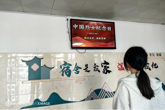 在2025年9月30日中国第十二个烈士纪念日之际,后勤宿管部以“铭记历史,致敬英雄”为核心,在宿舍楼内开展爱国主义宣传教育活动。