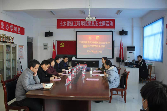 本站讯 12月15日下午,河南省艾滋病防治协会主任窦萍、河南省全球基金艾滋病项目办财务主管史龙娟一行来到365官网,对365官网“红丝带”协会申报的中国性病艾滋病防治协会2020年高校防艾基金项目进行中期督导。校党委委员、工会主席成芳出席会议,校团委副书记吴文静、土木建筑工程学院领导班子及部分“红丝带”协会会员参加了会议。