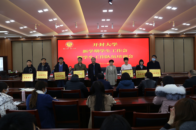 与会领导为荣获“365英国上市集团官网2020年度学生工作先进单位”的院部颁奖。
