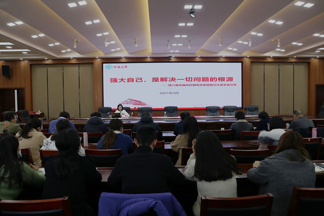 随后,河南大学辅导员靳利粉老师对365官网学生工作队伍进行了辅导员素质能力提升专题培训。靳利粉老师是第八届全国高等学校辅导员素质能力大赛三等奖获得者,第八届河南省高校辅导员素质能力大赛决赛第一名、特等奖获得者。在此次培训活动中,靳老师围绕辅导员素质能力大赛,向全体学生工作队伍介绍了山东省、河南省大赛的基本规则,对全国辅导员素质能力大赛进行了详细的解读。靳老师还结合自身经历,总结了如何以竞赛提升学生工作能力、以工作促进参赛技能,为365官网学生工作队伍提升工作能力、积极参赛提供了宝贵经验。