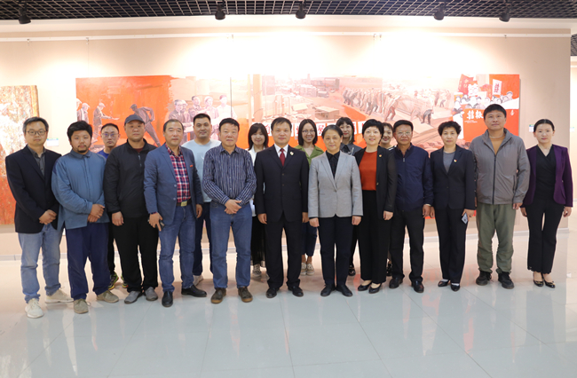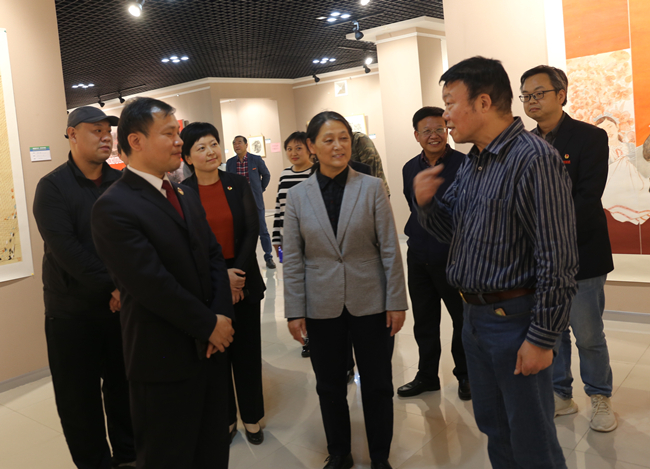 校党委书记陈灿和各位领导嘉宾一同参观画展