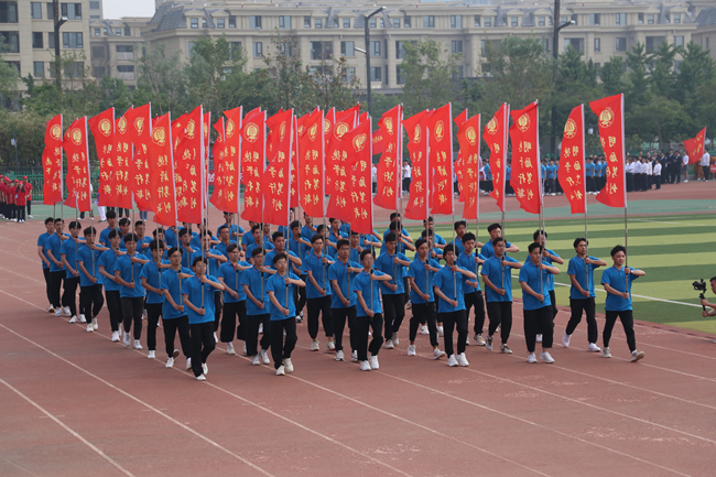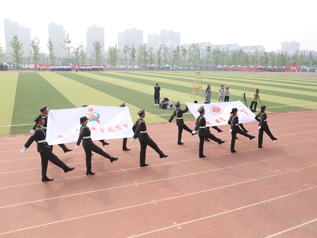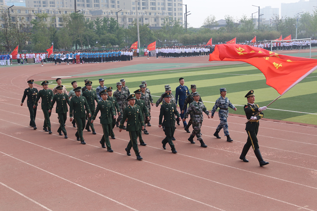 伴随着激昂热烈的运动员进行曲,国旗护卫队、学校退役军人方队、花束队、彩旗队及各院部代表队依次入场,他们步伐矫健、精神抖擞、意气风发,阔步走过主席台,接受领导和师生的检阅,展现了开大人拼搏进取、昂扬向上的精神风貌。