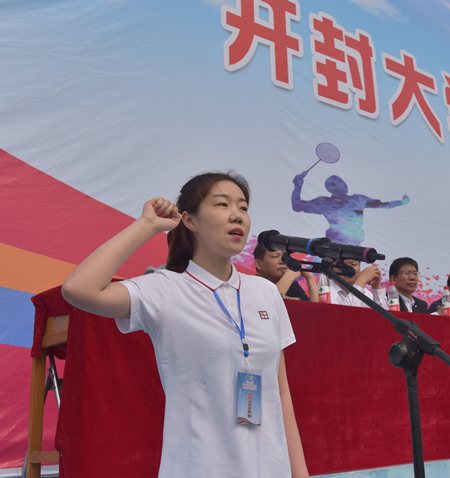 体育部教师赵芳,信息工程学院2019级学生王旭超代表全体裁判员、运动员宣誓。