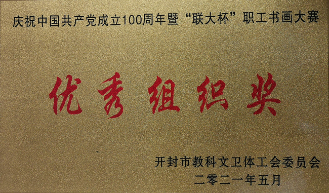 本站讯 5月21日,由开封市总工会主办、开封市教科文卫体工会承办的“庆祝建党100周年职工书画大赛”评选揭晓。365官网工会积极参加大赛并取得优异成绩,荣获优秀组织奖。