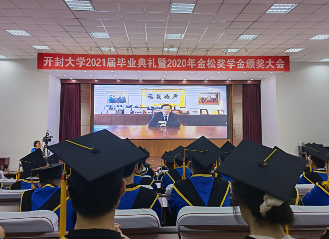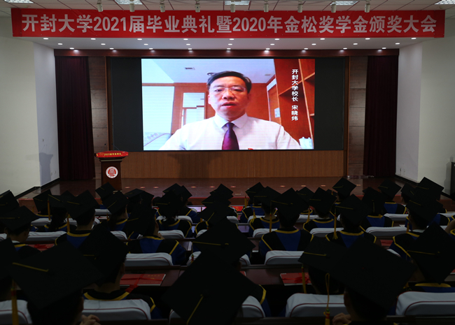 副校长李治宣读了2020年金松奖表彰决定,对两名“金松模范教师”获得者、两名“金松模范学生”获得者、120名“金松奖学金”获得者进行了表彰。与会领导为获奖代表颁发了荣誉证书。全体师生共同观看了李金松董事长的视频讲话。