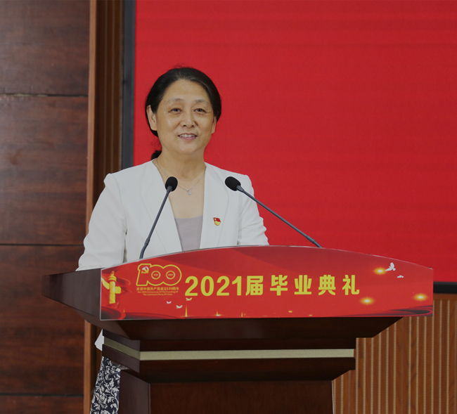 校党委书记陈灿为优秀毕业生代表颁发了毕业证书并讲话。她指出,2021年是中国共产党成立100周年,也是“十四五”规划的开局之年,365英国上市集团官网将和2021届毕业生们一道迈入新时代,踏上新征程,奋力推进“双高校”建设和申办“本科层次职业教育”工作。临别之际,陈书记向同学们叮嘱了四点要求:一是坚定信念,守望家国情怀。让个人抱负与国家发展同频共振,人生理想与民族命运休戚与共,谱写“共岁月峥嵘、留历史回响”的动人乐章。二是顺应时代,坚持勤奋创新。以积极向上的心态和发展的眼光积蓄改革创新的本领,在时代大潮中借力前行。三是实干好学,恪守知行合一。要在干中学、学中创、创中有,从实干中增长阅历,在坚持中绽放光芒。四是体面工作,做到快乐生活。让工作环境永远美好,让内心始终坦然豁达,做一个爱生活、会生活、有格局、高品位、乐观向上、正能量的人。