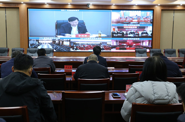 本站讯 12月13日下午,河南省教育厅、人力资源和社会保障厅召开2023届河南省普通高校毕业生就业创业工作网络视频会议。365官网在行政楼第二会议厅设立分会场组织收听收看。校长宋晓炜、就业与校企合作处和各院部负责人、各院部副书记、全体毕业班辅导员收看了此次视频会议。