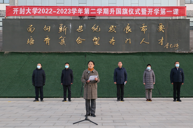 校党委书记陈灿在升旗仪式上讲授开学思政第一课,她指出,2023年是贯彻落实党的二十大精神的开局之年,是实施“十四五”规划的攻坚之年,是学校“双高”建设、提升办学层次的重要时期,面对明确的发展目标,繁重的发展任务,需要全体师生奋力推进各项工作全面提升、全面出彩。陈灿要求全体师生深学细悟,深入学习宣传贯彻党的二十大精神;要厚植家国情怀,勇担时代责任;要落实疫情防控新要求,守护校园安全。陈灿寄语全体师生,要始终坚持以习近平新时代中国特色社会主义思想为指导,深入学习贯彻党的二十大精神,坚定信心、同心同德,踔厉奋发、勇毅前行,奋力谱写新时代365官网高质量发展新篇章!