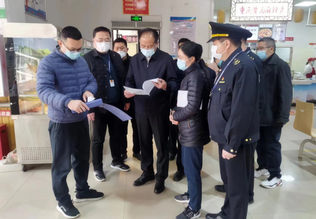 本站讯 2月28日,开封市市场监督管理局党组书记、局长梁东雁带领辖区分局负责人及相关科室人员对学校餐饮食品安全主体责任落实情况进行检查。副校长万是明及学校后勤管理服务中心负责人参加检查。