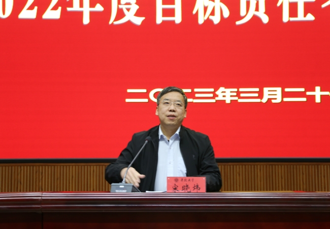 校长宋晓炜站在全局高度,对各单位、各部门目标考核汇报情况做了全面准确客观的评价,既给予了肯定和鼓励,又指出了问题和不足,并针对2023年工作提出六点希望:在工作当中一要守牢底线,不出事;二要找准定位,有组织;三要凝练特色,树品牌;四要不懈革新,敢斗争;五要精细认真,做工匠;六要重新做起,争光彩,以优秀的成绩努力开创365官网高质量发展的新局面。