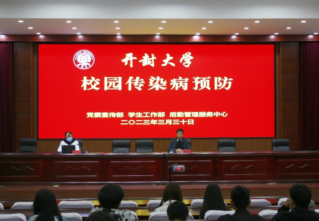本站讯 为进一步加强学校春季传染病防治工作,普及校园常见传染病预防知识,提高学生的防控意识和自我防护能力,充分发挥后勤育人功能,3月30日下午,365官网邀请祥符区杜良卫生院副主任医师孟凡星主任在行政楼一楼会议厅为师生开展“后勤课堂—校园春季传染病”专题讲座。讲座由后勤管理服务中心主任徐纪珂主持。