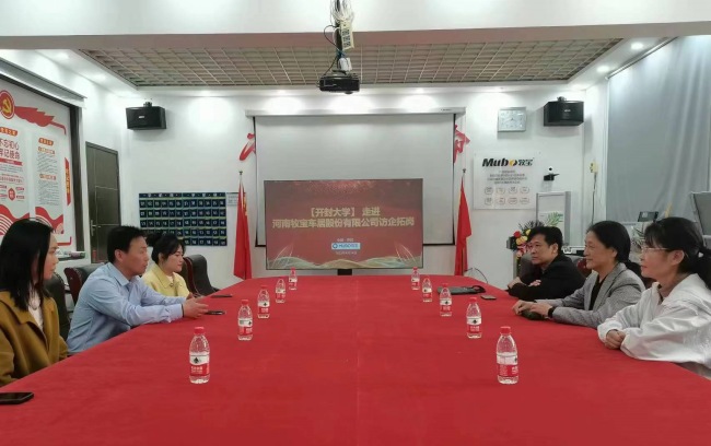 本站讯 4月14日下午,校党委书记陈灿走进河南牧宝车居有限公司开展访企拓岗。就业与校企合作处、艺术设计学院相关负责人参加了此次活动。