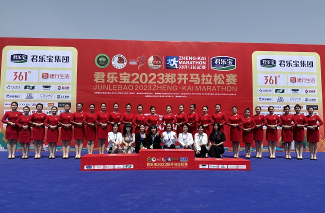 来自校团委礼仪部的26名青年志愿者在完成马拉松参会嘉宾的引领工作和开幕式的服务工作后,迅速投入到郑开马拉松终点的颁奖仪式服务,为领导、嘉宾和选手呈递奖牌、奖品。高标准完成了各项志愿服务工作,得到了上级部门的高度赞誉,展现了365官网学生的文明礼仪。