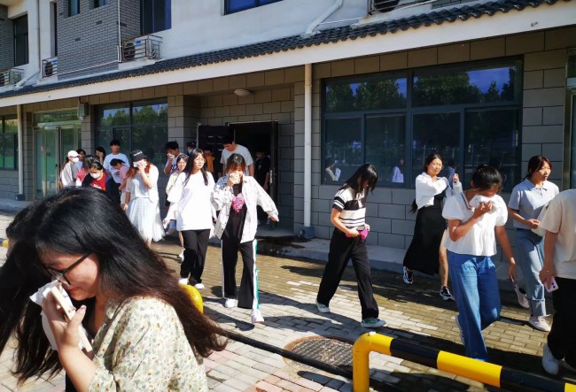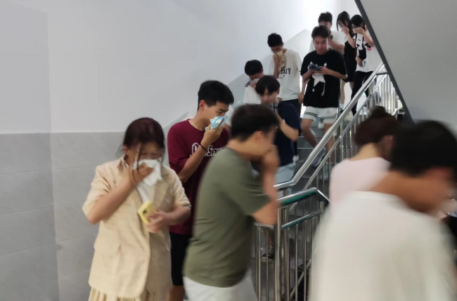 随着消防应急广播播报火灾险情,消防演练正式拉开了序幕,各楼层负责人员参照演习预定方案迅速组织学生紧急疏散,利用逃生通道及时逃离火灾现场,整个过程有条不紊。