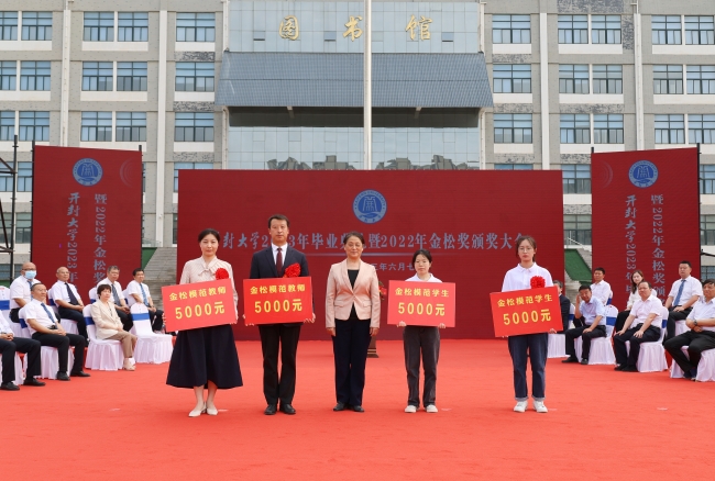 校党委书记陈灿为2022年度365英国上市集团官网金松模范教师、金松模范学生颁发了荣誉证书;校长宋晓炜为2023届毕业生代表颁发了毕业证书;校领导为其他获奖代表颁发荣誉证书。