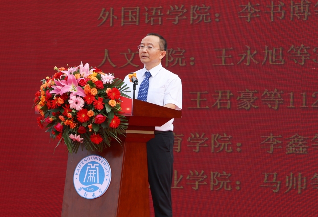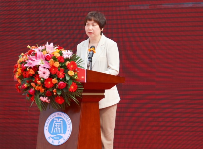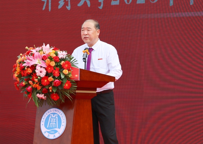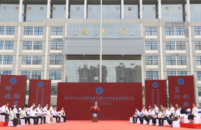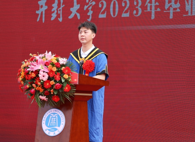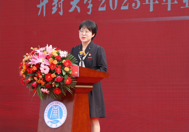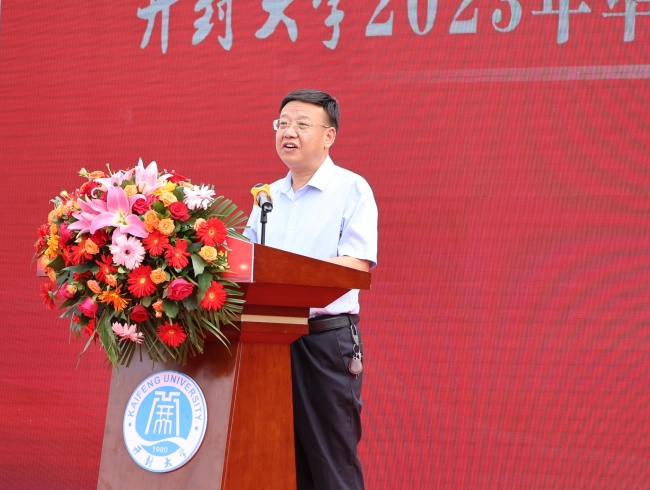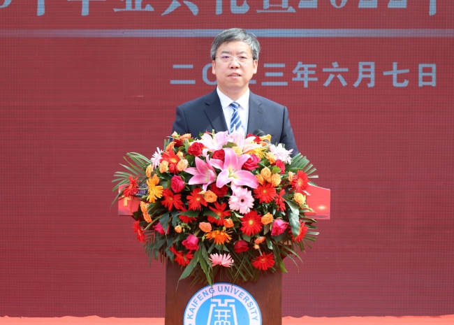 校长宋晓炜代表全体师生向2023届毕业生表达了衷心的祝贺和美好的祝福。他表示,2023届毕业生是特别的一届学生,见证了建党百年的荣光,以及2023年全面贯彻党的二十大精神的开局之年。新冠疫情贯穿了此届学生的大学生涯,大家凝聚起同心抗疫、共克时艰的磅礴力量,为开大校史镌刻了独特的印记。在即将各奔东西的时刻,宋晓炜满怀不舍与期待,为2023届毕业生送上了3句话。一是希望同学们始终坚定信仰,增强人生定力,在逐梦的路途上脚踏实地、行稳致远;二是希望同学们始终阳光向上,彰显青春活力,让青春绽放在祖国最需要的地方,为国家和社会发展贡献蓬勃的青春力量;三是希望同学们始终勇担使命,练就不凡能力,在新时代中国特色社会主义现代化建设的征程中建功立业。