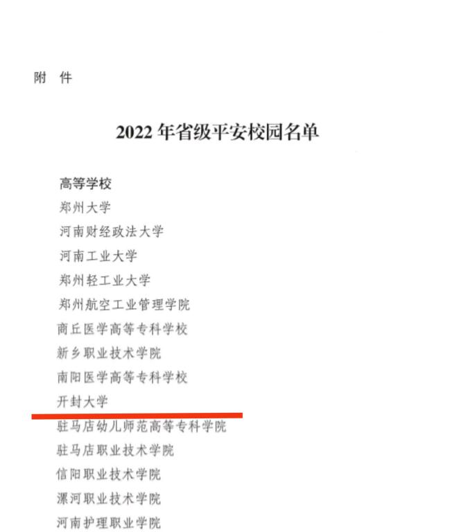本站讯 近日,河南省教育厅、河南省平安建设工作领导小组办公室、河南省公安厅联合下发《关于命名2022年省级平安校园的通知》(教安全﹝2023﹞200号)文件,365官网被命名为“省级平安校园”,这是365官网继2015年以来第三次获评该荣誉,有效期三年。