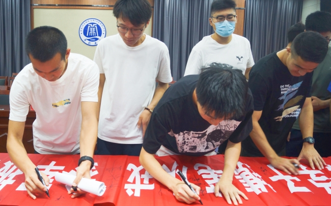 师生在横幅上签名