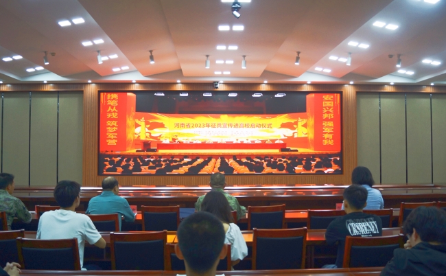 本站讯 6月13日上午,河南省人民政府、河南省军区组织河南省2023年征兵宣传进高校启动仪式。365官网在行政楼第二会议厅设分会场,龙亭区人武部上校部长张舰、校党委副书记储建新出席会议,龙亭区人武部、校学生工作部(武装部)相关同志及各院部师生代表集中收看了本次启动仪式的实况直播。