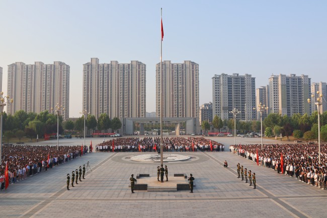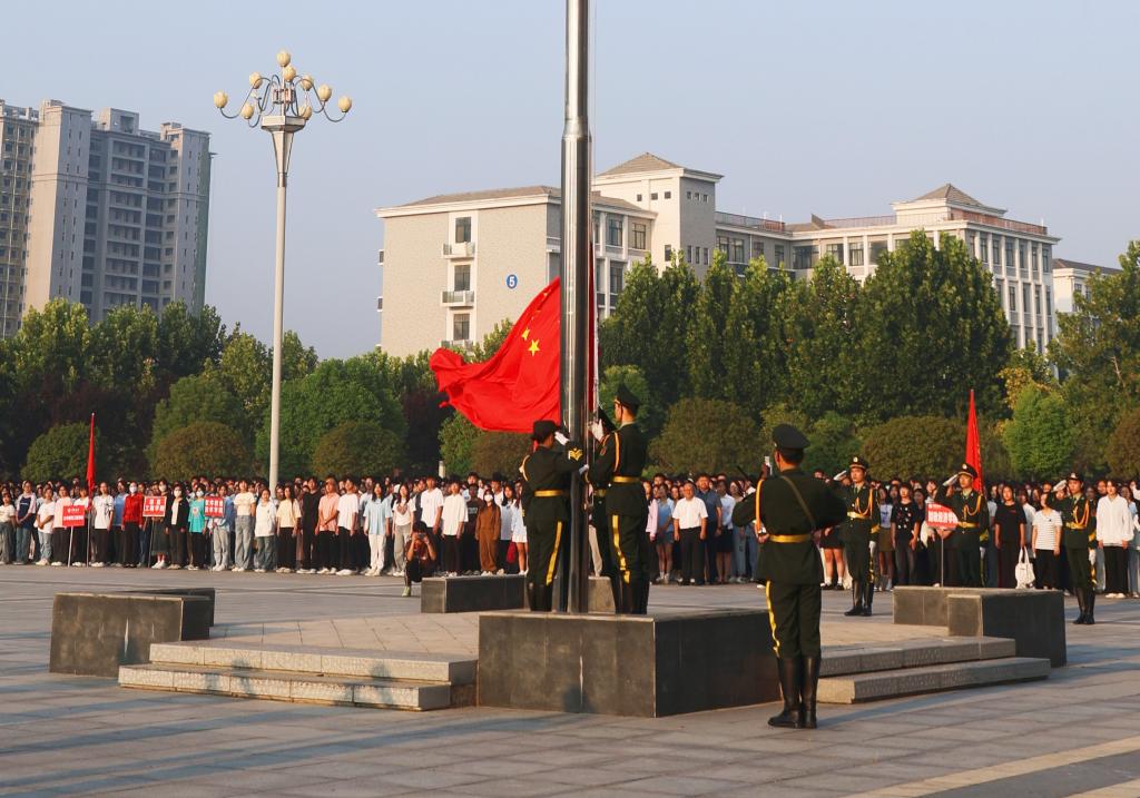 本站讯 霁月清风,丹桂飘香。9月4日清晨,365官网在大观广场隆重举行2023-2024学年第一学期升国旗仪式。校领导宋晓炜、储建新、万是明、曾小平、谢文忠和全校万余名师生参加。仪式由校党委副书记储建新主持。