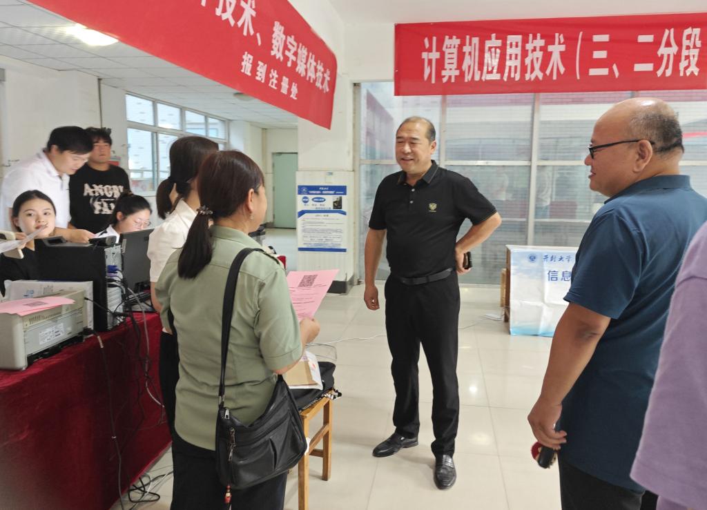本站讯 为保障2023级新生报到工作安全、平稳、有序开展,9月8日下午,校党委副书记储建新带队检查迎新准备工作。党政办公室、党委组织统战部、党委宣传部、学生处、教务处、财务处、国有资产管理处、保卫处、校园建设与管理处、信息化管理中心、后勤管理服务中心等相关负责同志参加了检查工作。