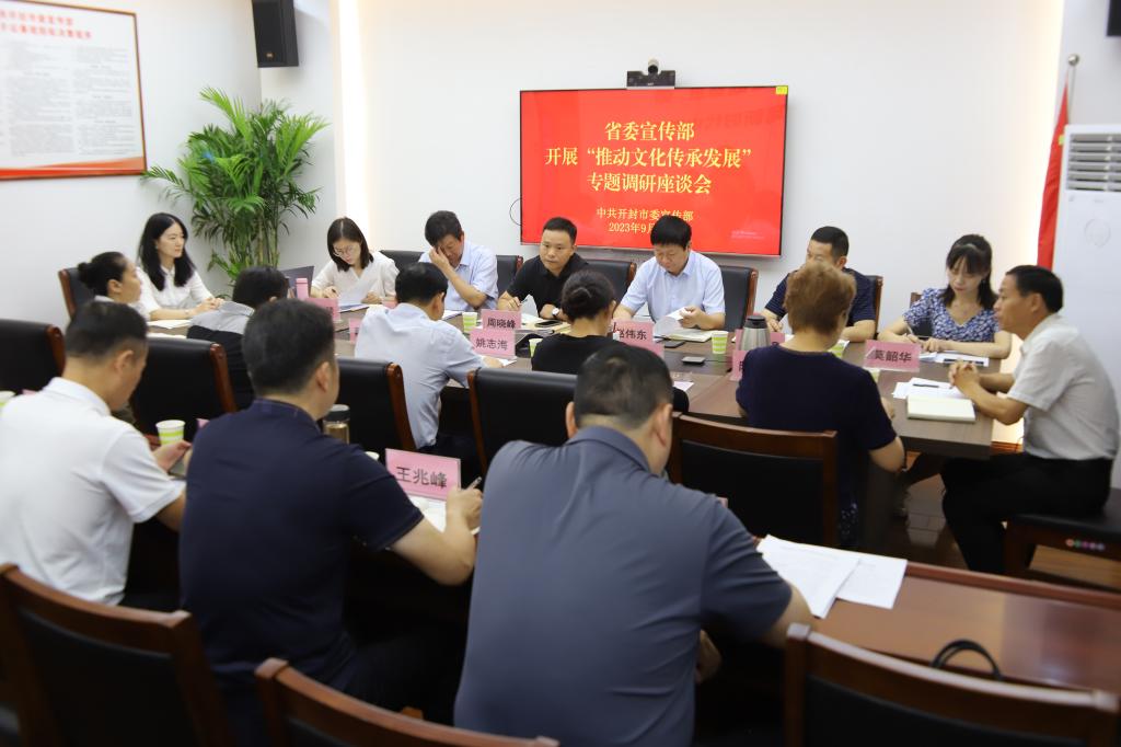 本站讯 为深入贯彻落实2023年6月2日习近平总书记在文化传承发展座谈会上的讲话精神,受中宣部委托,河南省委宣传部9月14日在开封市进行“推动文化传承发展”专题调研活动,并召开座谈研讨会。365官网人文学院院长赵瑾教授参加了调研,并就365官网的文化传承工作发言。
