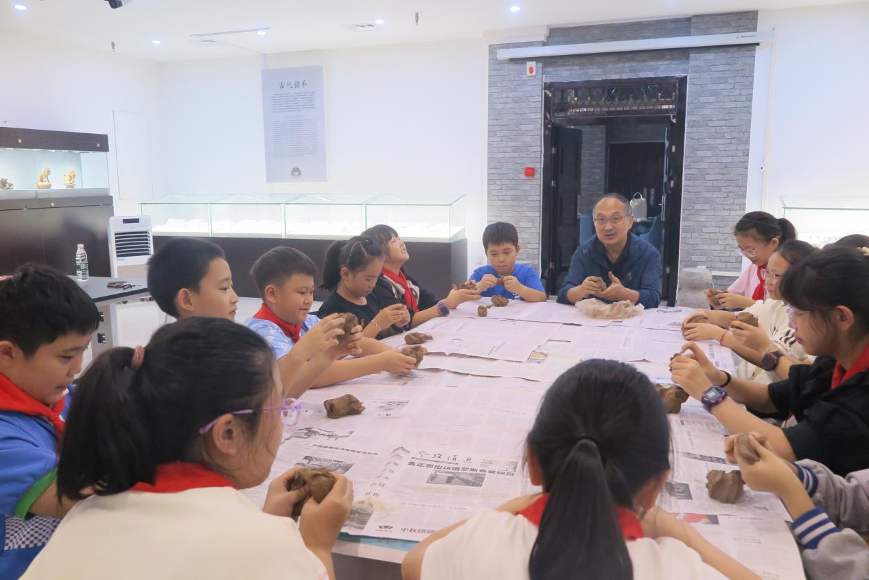 活动期间,郑州大学第二附属小学的秦小红、周亚莉老师带领小学生课题组成员,在馆内开展了研学活动。师生听取了魏跃进教授对宋文化的介绍,重点考察了宋代陶模范,并对宋代陶模范的缘起、社会功能、制作技术、文化内涵与审美进行了探究性学习。师生在体验厅亲自体验了宋代陶模范的翻制,感受宋代传统文化魅力和科学技术的力量。两位带队老师对大观博物馆文化传承和创新育人平台建设给予了高度评价。她们表示,大观博物馆藏品丰富,尤其是宋代陶模范,师生通过此次探究与实践性学习,既提升了民族自豪感,又培养了创新性思维。