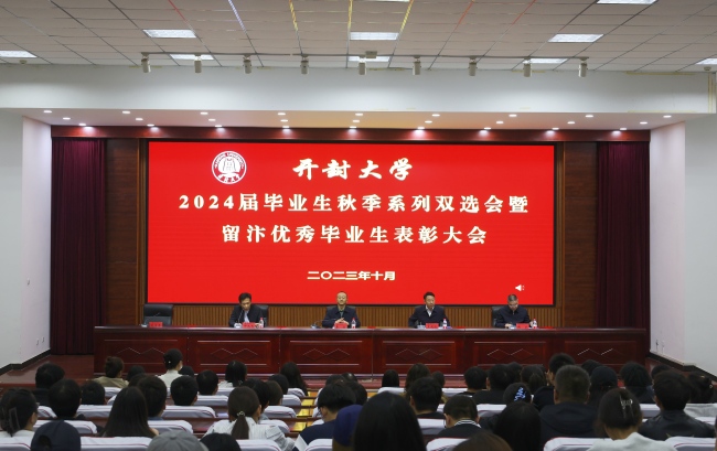 表彰大会上,李治向参会的领导、嘉宾表示热烈欢迎,希望受到表彰的毕业生要继续努力,再创佳绩。同时,他要求所有在校学生要树立正确的择业观、就业观,制定好职业规划,努力学习专业知识和技能,主动迎接每一次机会的到来,早日回报社会、实现人生价值。赵宏宣读了《开封市驻汴高校留汴优秀毕业生评选结果的通知》。与会领导为留汴优秀毕业生颁奖。